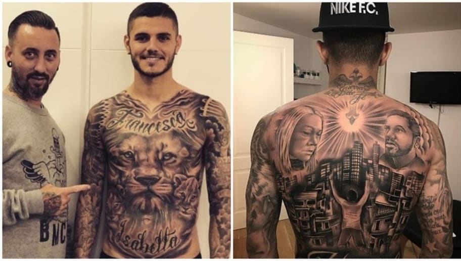Tiền đạo đang chơi cho Paris Saint-Germain theo dạng cho mượn Mauro Icardi như một bức họa sống với kín khắp người là những hình xăm.