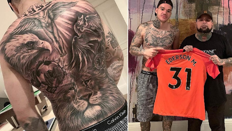 Thủ môn của Man City Ederson cũng khá nổi tiếng với việc xăm mình nhưng lại có một gương mặt khá ‘baby’.